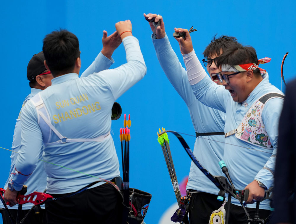背水一战的山东队及时调整,以57:51将总比分扳成4:4平,决赛被带入附加赛。在今年世界大学生运动会反曲弓混合团体赛中摘金的山东选手刘妍秀把握住机会,在附加赛中最后一位出场射中10环,将山东队送上最高领奖台。河南队也拿到了历史上首枚全运会射箭项目奖牌。
